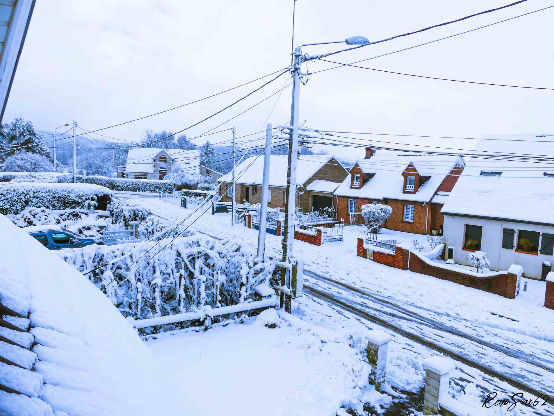 Ca y est, la neige fait son apparition dans les collines de l'Artois! Un petit degré et un beau manteau blanc. Ci dessous ma rue couverte de neige. Sinon, un weekend tranquille et reposant. Demain, je vais chez l'urologue pour examen annuel. J'ai beaucoup de chose à lui demander car j'ai le plus confiance en lui qu' à l'oncologue.