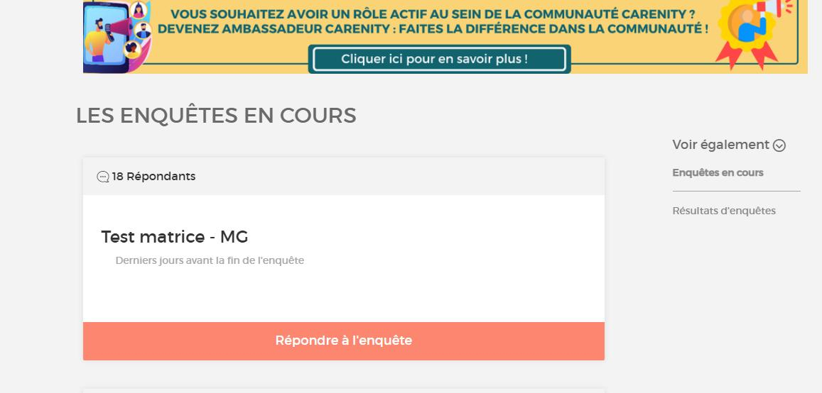 Tout d'abord, je tiens à vous dire que l'enquête "Test matrice - MG" est un test que nous faisons en interne, vous n'auriez pas dû la voir, il s'agit d'une erreur de notre part. Normalement nous ne mettons pas nos tests en ligne.