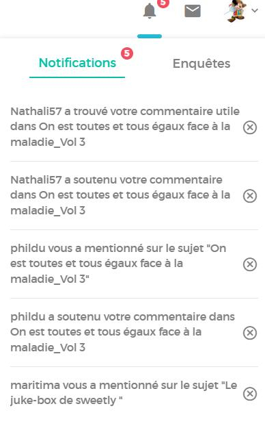 Concernant les autres enquêtes, tant que vous n'y avez pas participé et qu'elles sont en ligne, elles restent dans vos notifications. Mais c'est une très bonne idée de pouvoir les fermer, je vais en parler à notre équipe informatique.