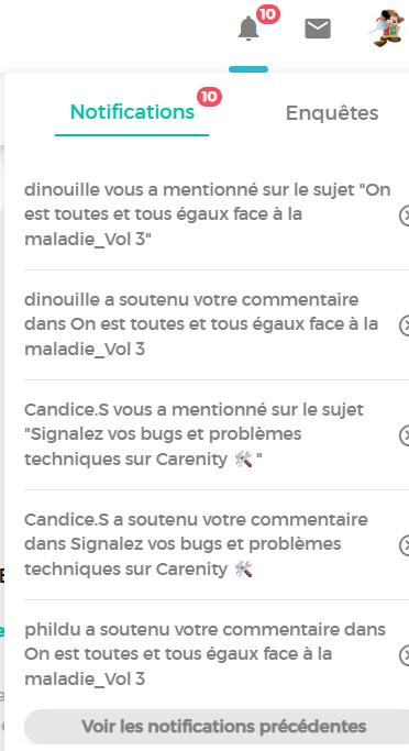 Nous avons remarqué que plusieurs membres rencontrent des difficultés techniques sur Carenity, notamment concernant les notifications (par exemple, le chiffre affiché sur la cloche qui ne correspond pas toujours aux nouveaux messages).