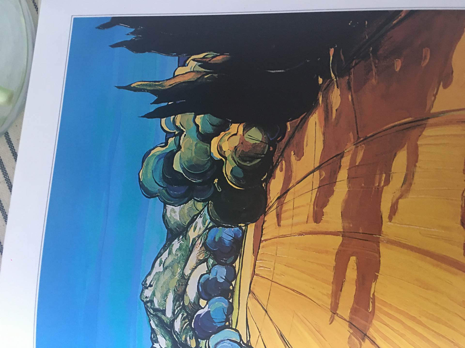 vision du sermon tableau glorieux par son audace !aussitôt terminé il écrivit a Van Gogh je viens de faire un tableau religieux trés mal fait ,mais qui m'a intéressé a faire et le travail me plait! "je crois avoir atteint dans les figures une grande simplicité rustique et superstitieuse " le tout trés sévère pour moi. Dans ce tableau le paysage et la lutte de Jacob avec l' Ange n'existent que dans l'imagination des gens en prière ,par suite du sermon . C'est pourquoi il y a contraste entre les gens nature et la lutte dans son paysage ,non nature et disproportionné.