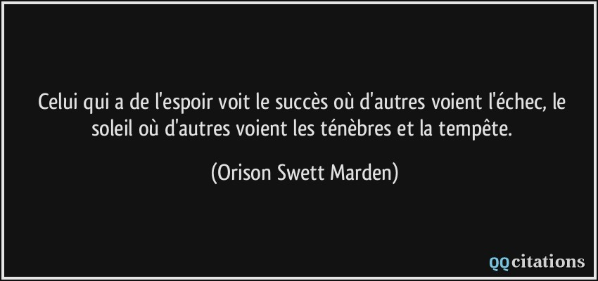 Orison Swett Marden, créateur de la Revue Success, est considéré comme le fondateur du Mouvement moderne du Succès en Amérique. Il est à l’origine des nouvelles théories du succès rendues populaires par les auteurs de best-sellers comme Napoleon Hill, Clement Stone, Dale Carnegie, Og Mandino, Earl Nightingale, Norman Vincent Peale, Stephen R.Covey, Anthony Robbins, et Brian Tracy.
